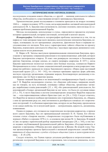31. Рудницкая Е. Л., Дьяков В. А. Возникновение тайного интернационала Бакунина // Новая и новейшая история. 1971. № 6. С. 113-125. EDN: BVWTEA