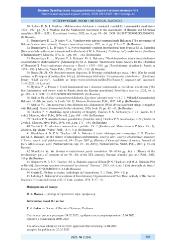 1. Аладышкин И. В. Старая и добрая история российского анархизма // Российская история. 2023. № 6. С. 112-117. DOI: 10.31857/S2949124X23060111