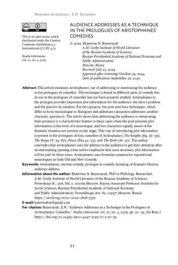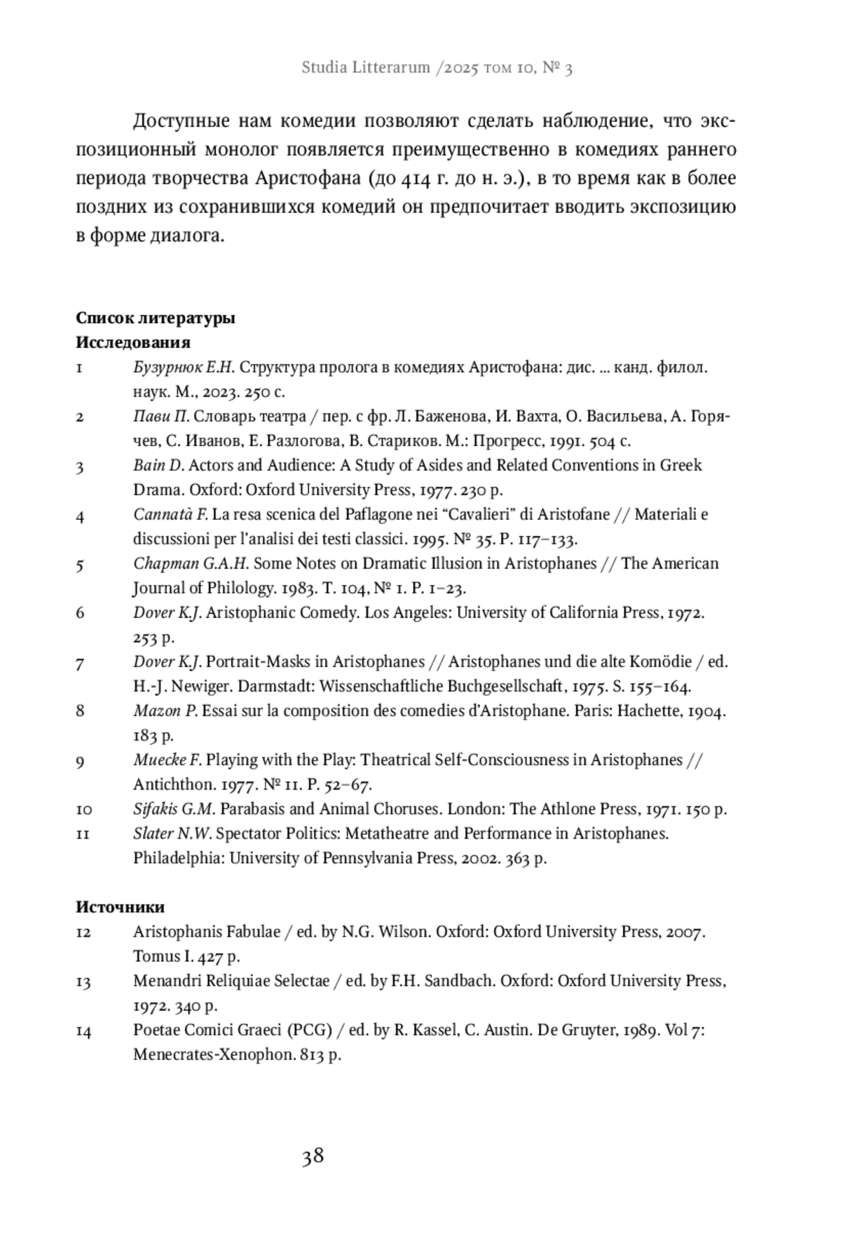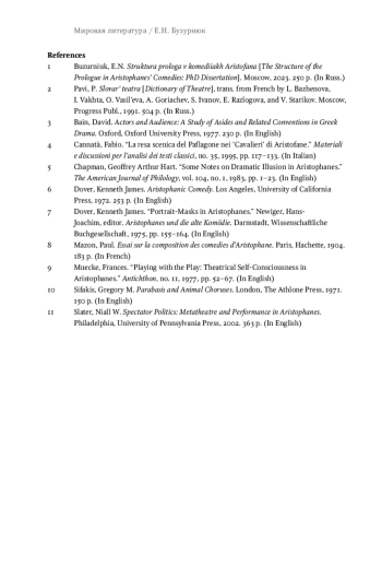 1. Бузурнюк Е.Н. Структура пролога в комедиях Аристофана: дис. … канд. филол. наук. М., 2023. 250 с. EDN: OZFFYT