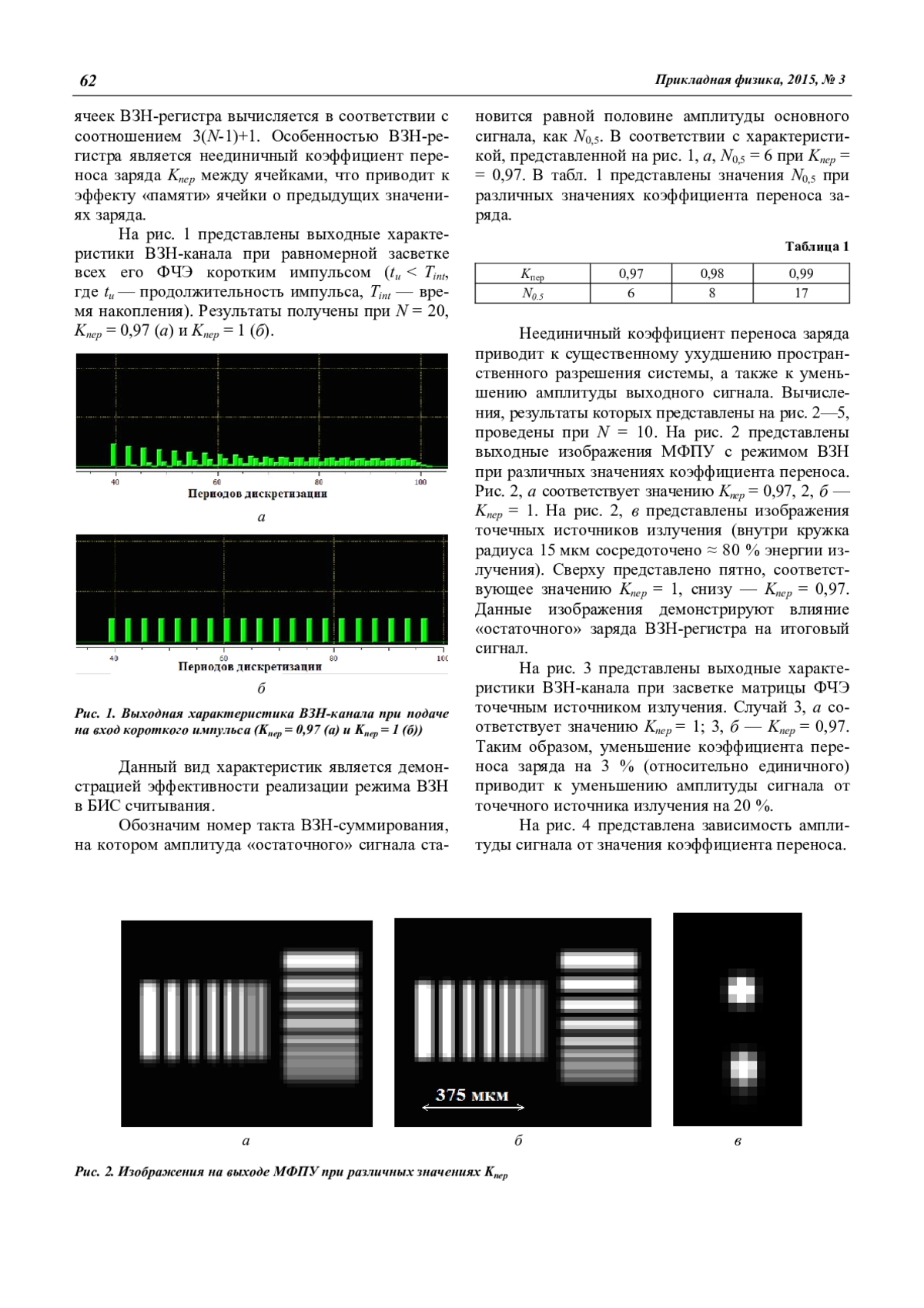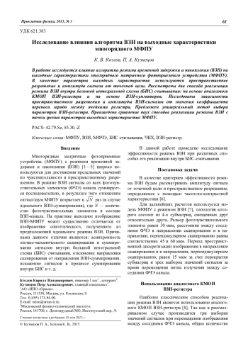 Козлов К. В., Кузнецов П. А. Исследование влияния алгоритма ВЗН на выходные характеристики многорядного МФПУ 61