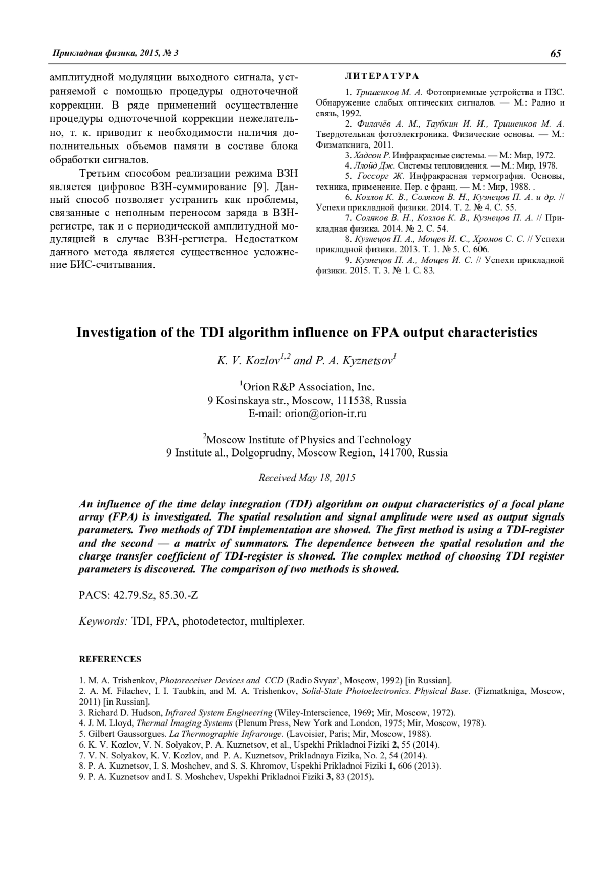 K. V. Kozlov and P. A. Kyznetsov Investigation of the TDI algorithm influence on FPA output characteristics 61