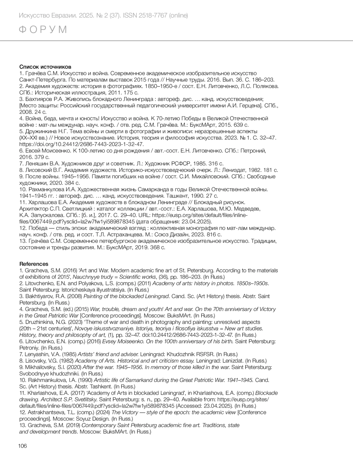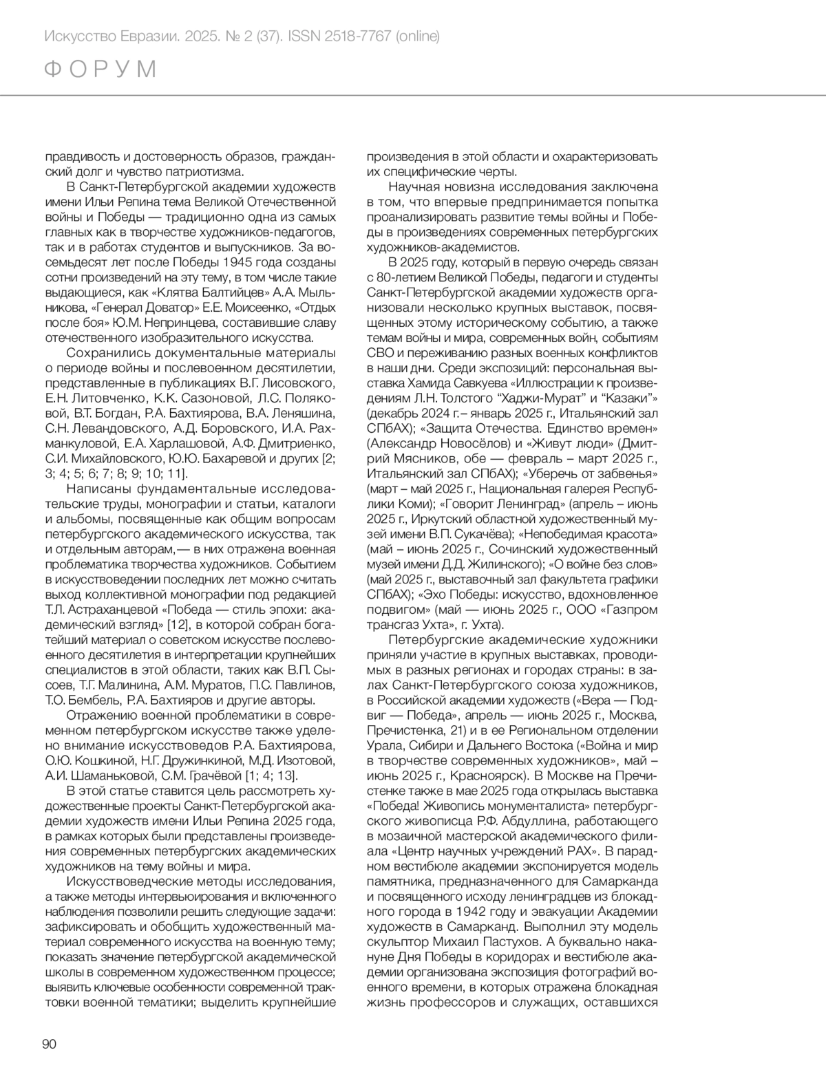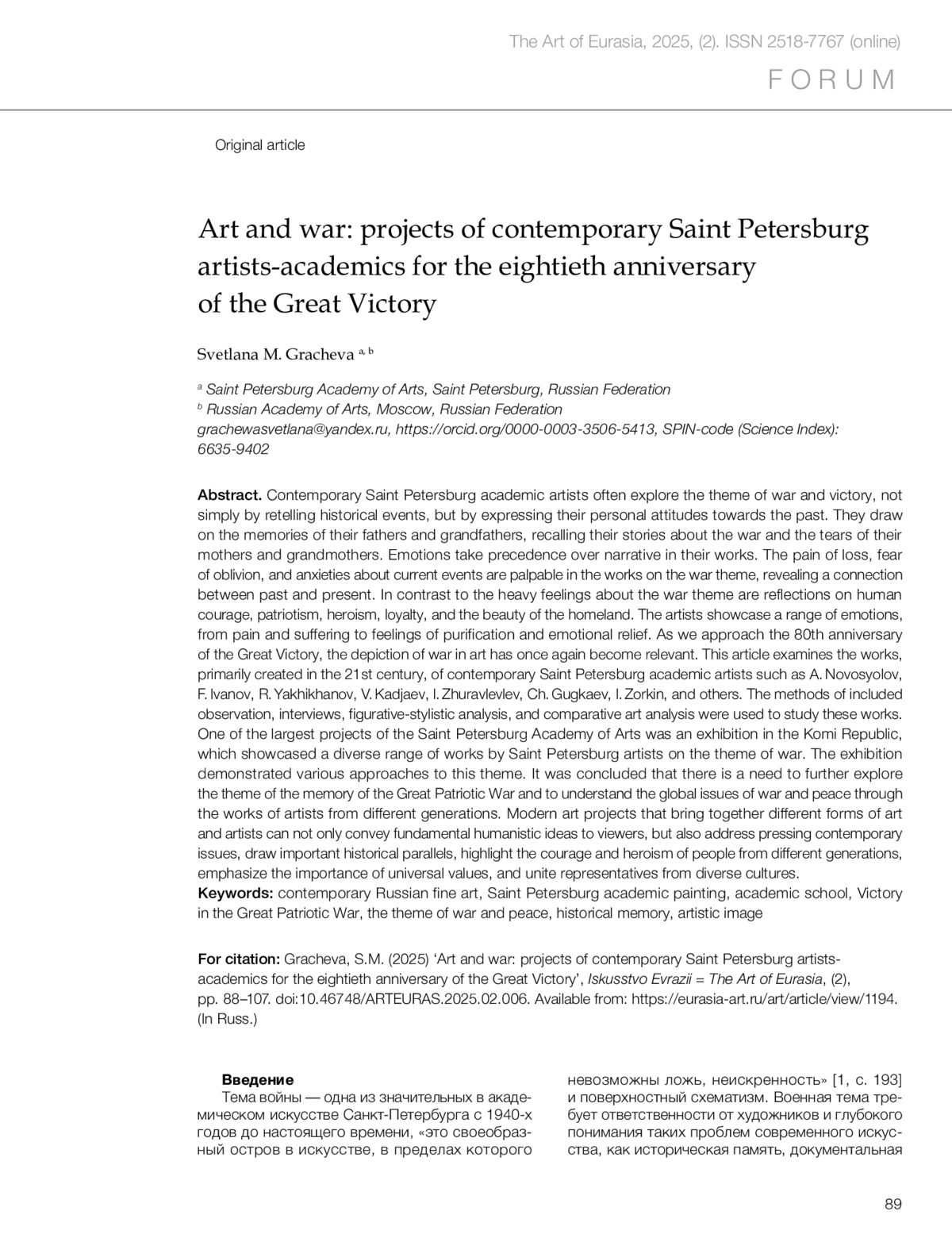 Грачёва С.М. Искусство и война: проекты современных петербургских художников-академистов к 80-летию Великой Победы // Искусство Евразии [Электронный журнал].