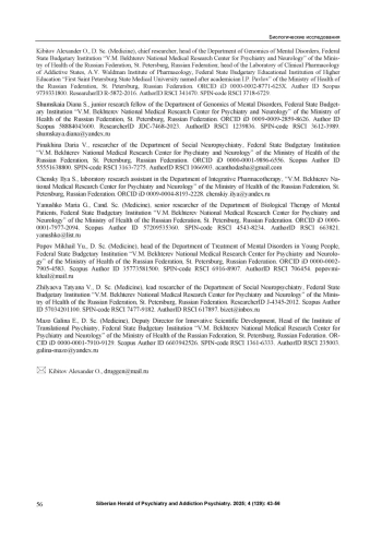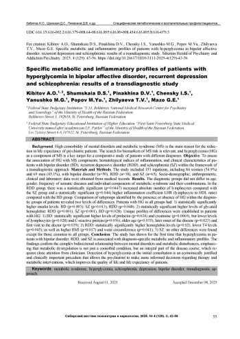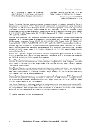16. Кибитов А.О., Шумская Д.С. Современные полногеномные ассоциативные исследования психических расстройств: фокус на механизмы воспаления. Сибирский вестник психиатрии и наркологии. 2024. № 4 (125). С. 56-65.