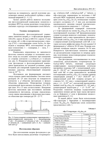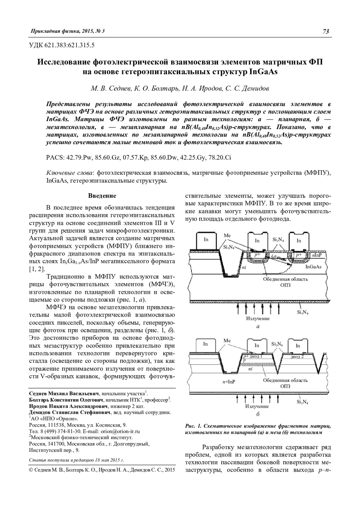 Седнев М. В., Болтарь К. О., Иродов Н. А., Демидов С. С. Исследование фотоэлектрической взаимосвязи элементов матричных ФП на основе гетероэпитаксиальных структур InGaAs 73
