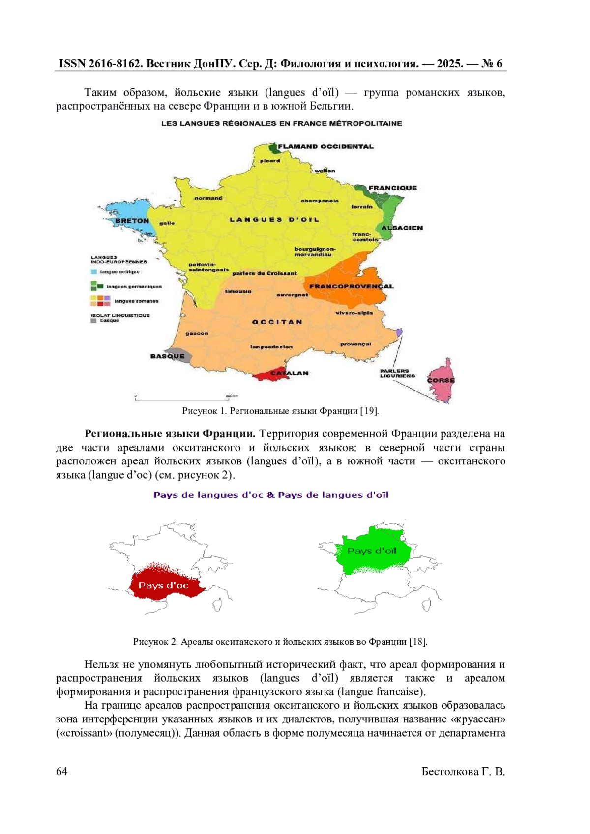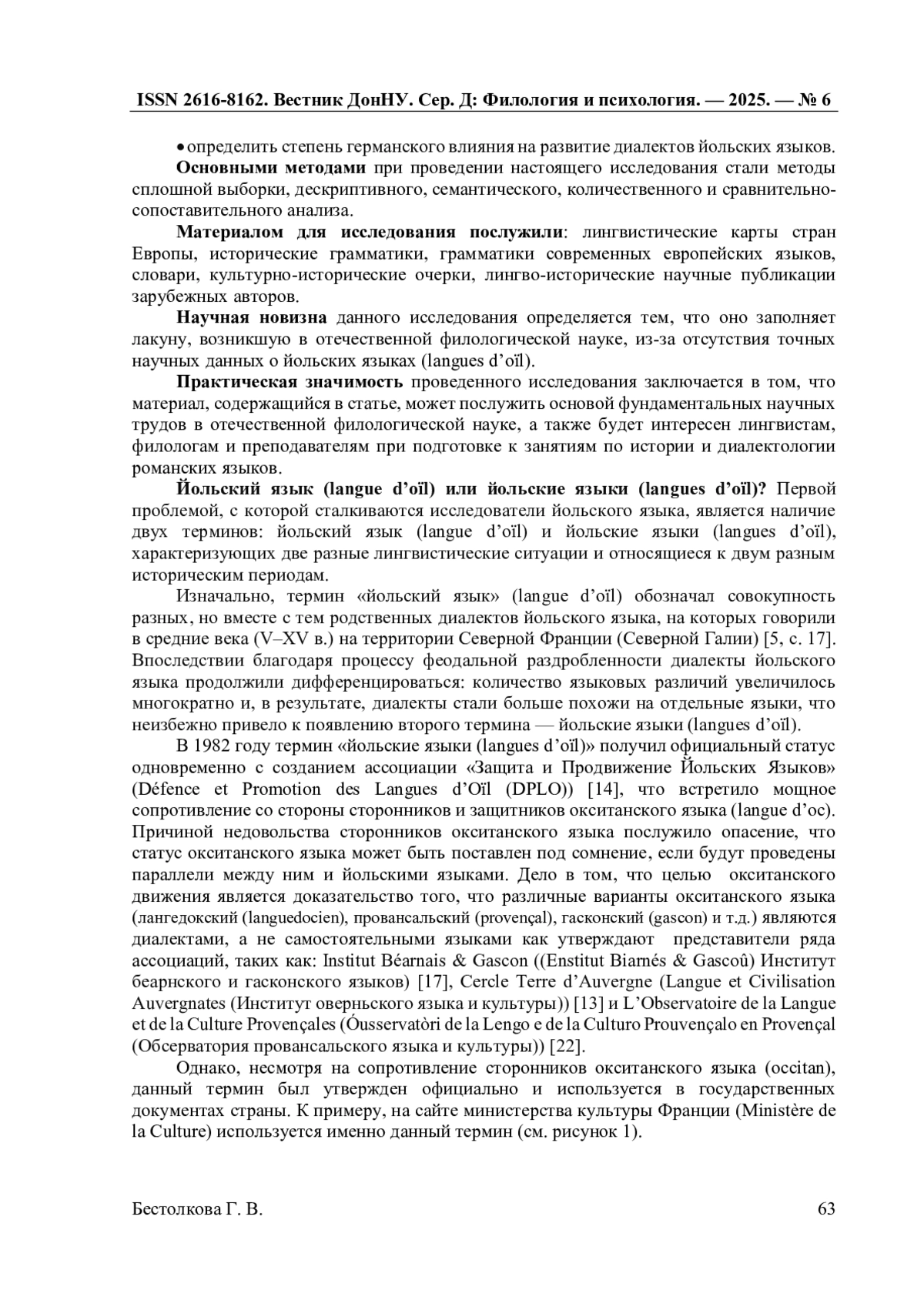 Целью данной научной статьи является интеграция и адаптация термина «йольские языки (langues d’oïl)» в понятийный аппарат современной отечественной романистики для расширения научных знаний о данной группе романских языков. В соответствии с поставленной целью в работе решается ряд ключевых задач: анализируются исторические предпосылки формирования самого термина; описываются ареалы распространения региональных языков на территории современной Франции; даётся комплексная характеристика феномену «французского патуа» (patois francisé) как результата взаимодействия йольских языков и стандартного французского. Важными аспектами исследования являются определение места йольских языков в общей классификации романских языков, разработка собственной классификации их диалектов, а также оценка степени влияния германских языков на их развитие.