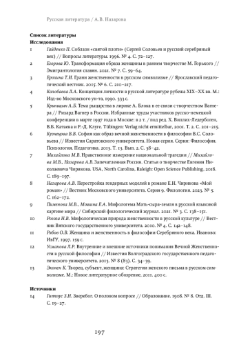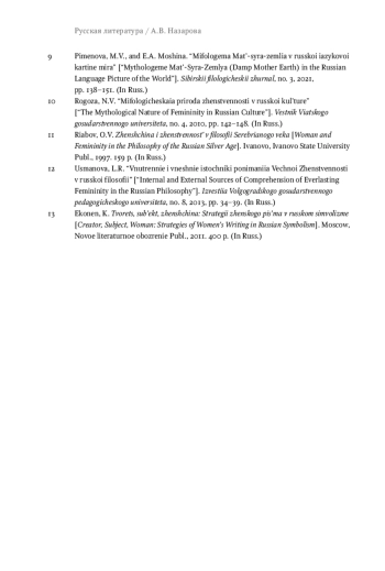 12. Усманова Л.Р. Внутренние и внешние источники понимания Вечной Женственности в русской философии // Известия Волгоградского государственного педагогического университета. 2013. № 8 (83). С. 34-39. EDN: RCNVLP