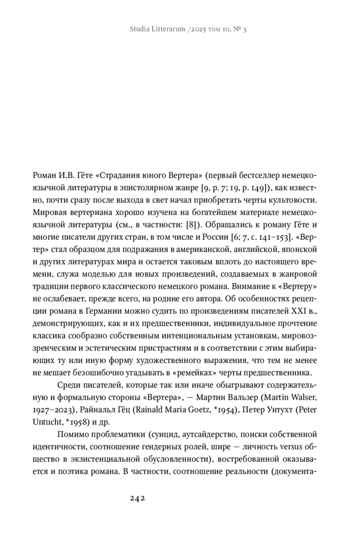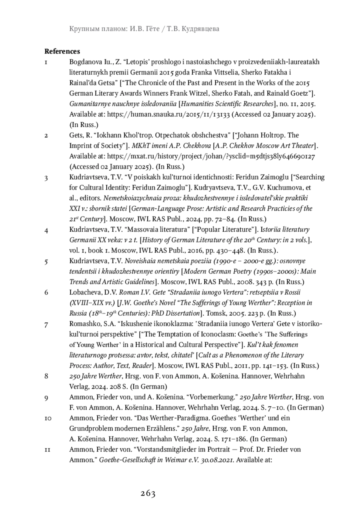 10. Аммон Ф. фон. Дас Вертер-Парадигма. Goethes.,Werther“ und ein Grundproblem Contemporary Erzählens // 250 Jahre Werther / час. фон Ф. фон Аммон, А. Кошенина. Ганновер: Wehrhahn Verlag, 2024. С. 171-186.