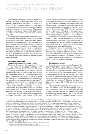 2. Тома Л.А. Творчество Галины Кантор-Молотовой в театре кукол и не только // Искусство Евразии. 2021. № 3 (22). С. 44-59. DOI: 10.46748/ARTEURAS.2021.03.004 EDN: RHJSJF