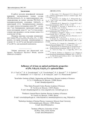 9. Vasil’eva. N. V., Spassky D. A., Randoshkin I. V., et. al. // Materials Research Bulletin. 2013. V. 48. Issue 11. P. 4687.