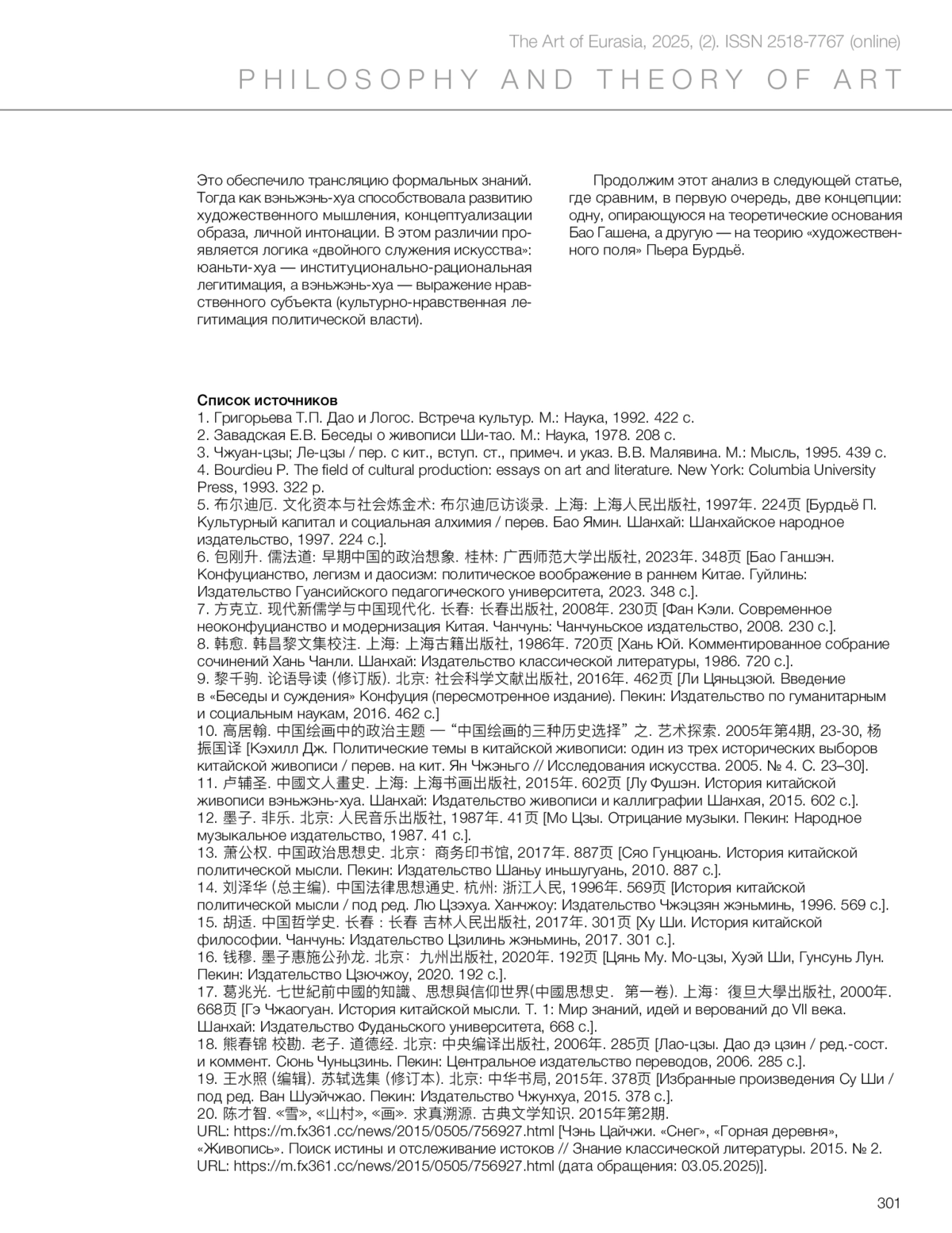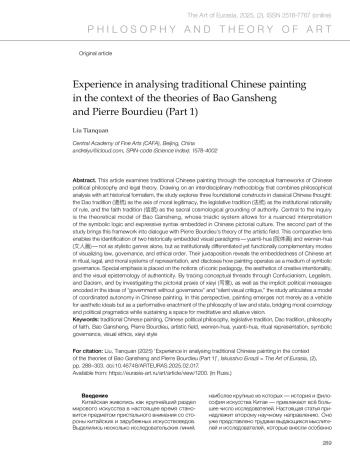 Лю Тяньцюань. Опыт анализа традиционной китайской живописи в контексте теорий Бао Ганшэна и Пьера Бурдьё (часть 1) // Искусство Евразии [Электронный журнал]. 2025.