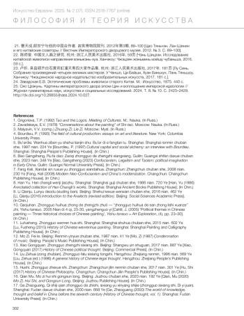 25. Xiao, Zekun (2024) ‘Qing Dynasty court paintings and the embodiment of imperial ideology’, *Journal of Humanities, Arts and Social Science*, 8(10), pp. 2423–2429. doi:10.26855/jhass.2024.10.027. (In Russ.)