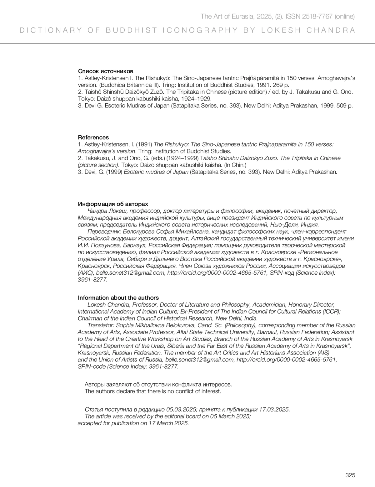 Чандра Л. Тримурти // Искусство Евразии [Электронный журнал]. 2025. No 2 (37). С. 322–325. https://doi.org/10.46748/ARTEURAS.2025.02.019.