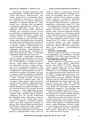Rukavishnikov GV, Kasyanov ED, Pinakhina DV, Kibitov AO, Neznanov NG, Mazo GE. Multimorbidity concept as integrative research method of mental and somatic disorders mechanisms. V.M. Bekhterev Review of Psychiatry and Medical Psychology. 2023;57(4):8-19. (in Russian). DOI: 10.31363/2313-7053-2023-854