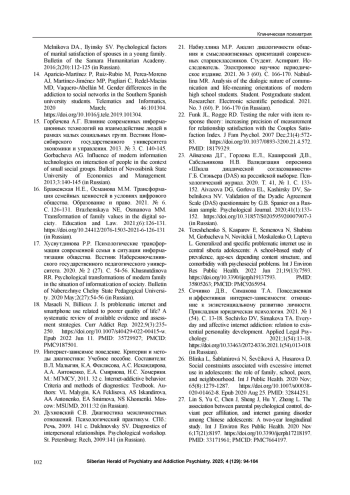 24. Tereshchenko S, Kasparov E, Semenova N, Shubina M, Gorbacheva N, Novitckii I, Moskalenko O, Lapteva L. Generalized and specific problematic internet use in central siberia adolescents: A school-based study of prevalence, age-sex depending content structure, and comorbidity with psychosocial problems. Int J Environ Res Public Health. 2022 Jun 21;19(13):7593. 10.3390/ijerph19137593. PMID: 35805263; PMCID: PMC9265954. DOI: 10.3390/ijerph19137593.;PMCID PMID: 35805263
