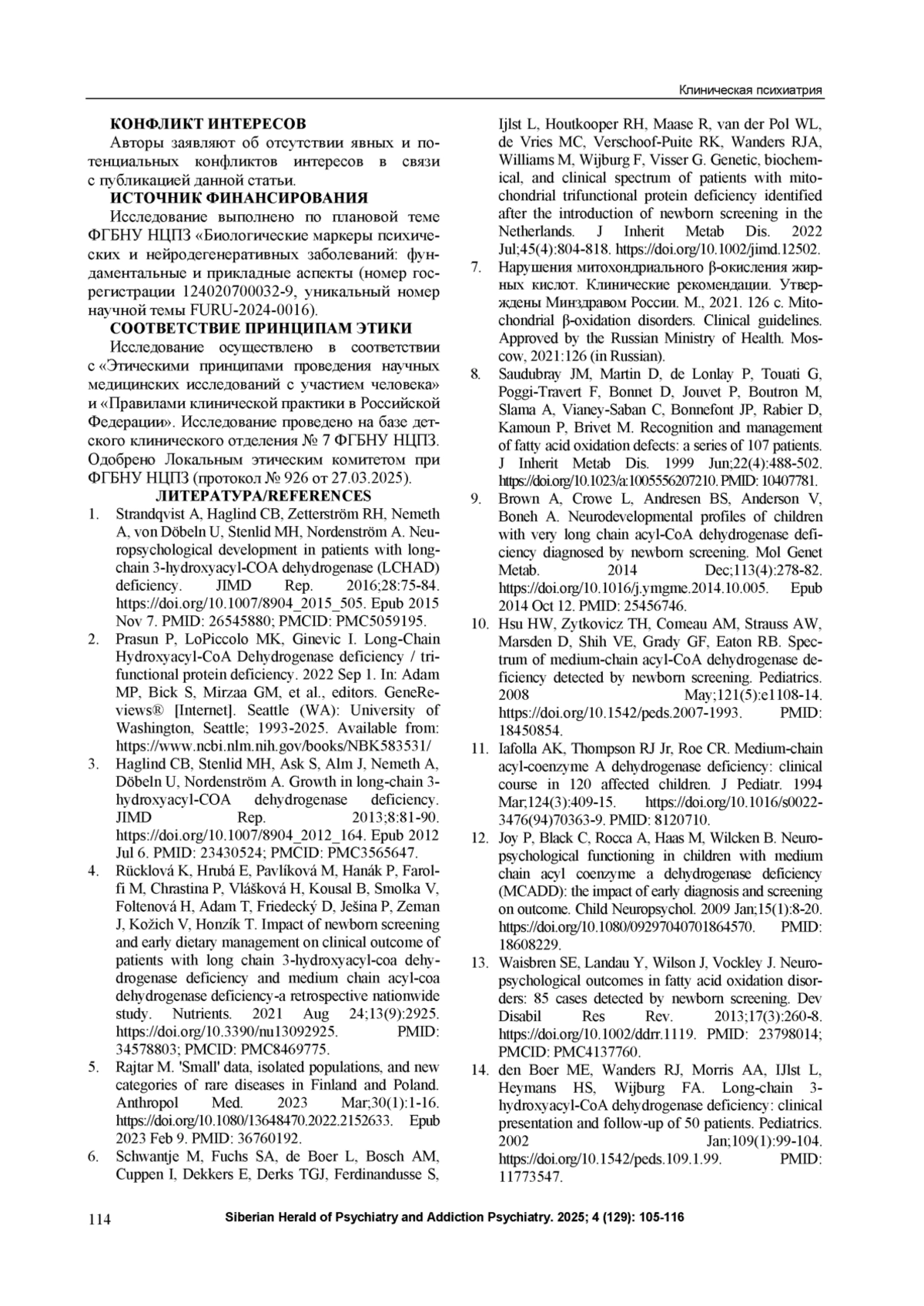 Mitochondrial β-oxidation disorders. Clinical guidelines. Approved by the Russian Ministry of Health. Moscow, 2021:126 (in Russian).