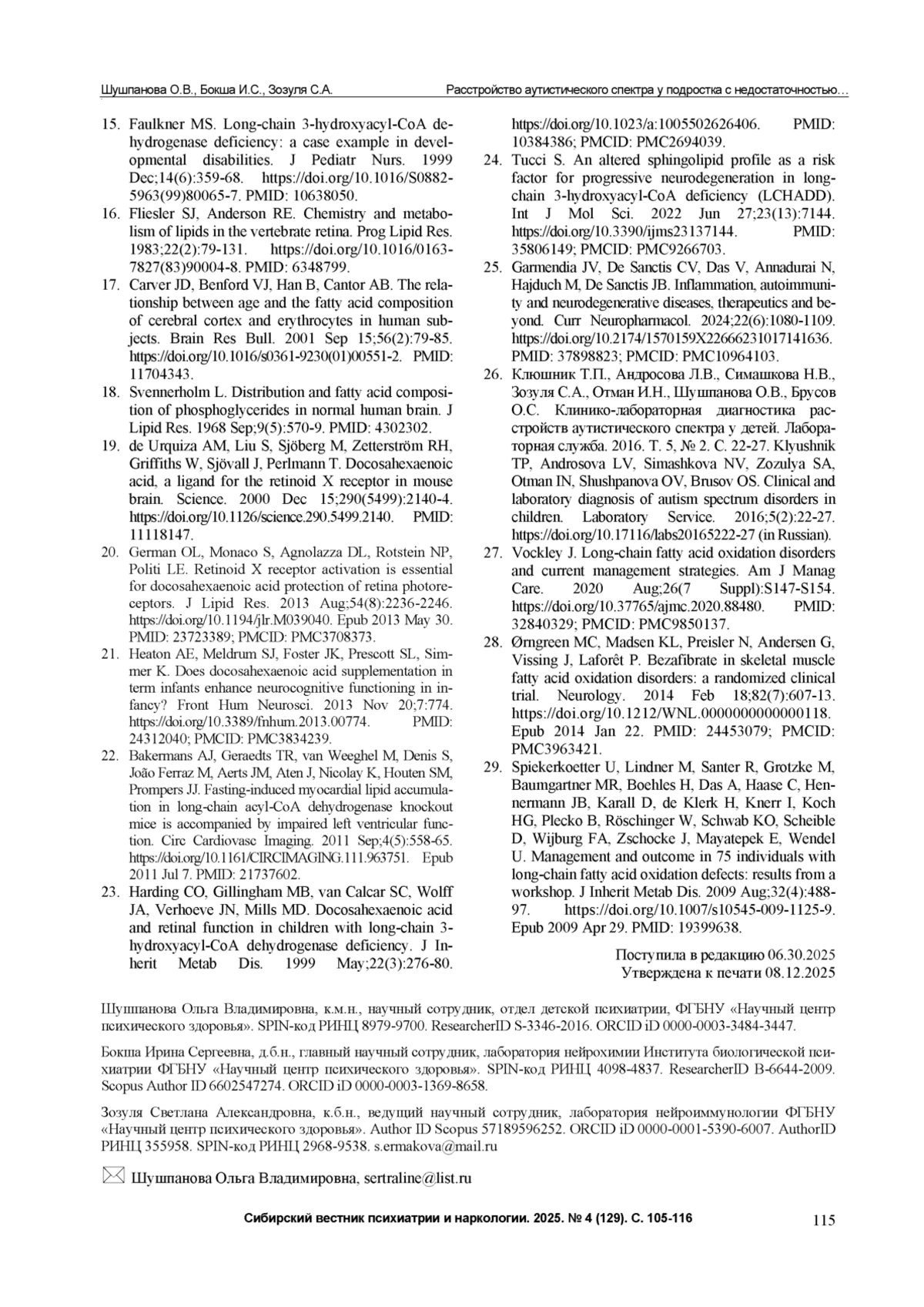 26. Клюшник Т.П., Андросова Л.В., Симашкова Н.В., Зозуля С.А., Отман И.Н., Шушпанова О.В., Брусов О.С. Клинико-лабораторная диагностика расстройств аутистического спектра у детей. Лабораторная служба. 2016. Т. 5, № 2. С. 22-27.