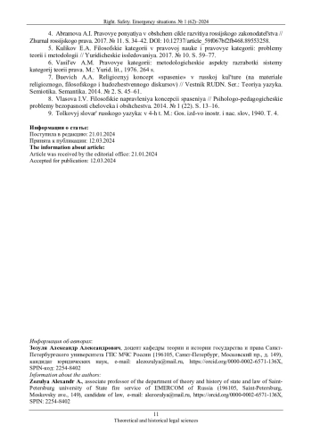 1. Арзамасов Ю.Г., Ирошников Д.В. Безопасность как правовая категория // Государство и право. 2019. № 8. С. 133-137. DOI: 10.31857/S013207690006255-2 EDN: OGBJLN