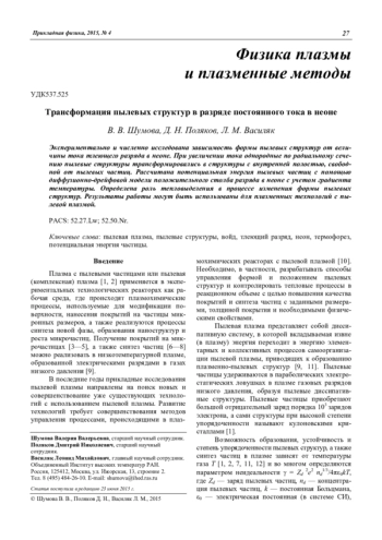 Шумова В. В., Поляков Д. Н., Василяк Л. М. Трансформация пылевых структур в разряде постоянного тока в неоне 27