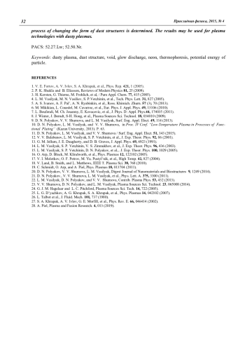 6. Mikikian M., Couedel L., Cavarroc M., et al. // Eur. Phys. J. Appl. Phys. 2010. V. 49. P. 13106.