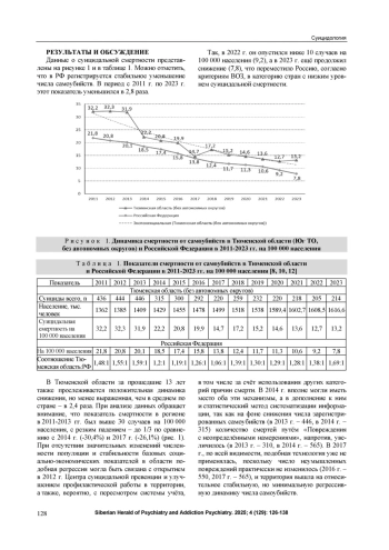 3. Положий Б.С., Васильев В.В., Каменщиков Ю.Г. Влияние социально-экономических и психопатологических факторов на динамику суицидальной смертности в Удмуртской Республике. Академический журнал Западной Сибири. 2021, Т. 17, № 1 (90). С. 5-13.