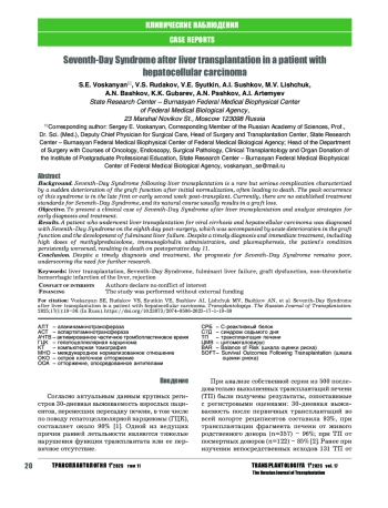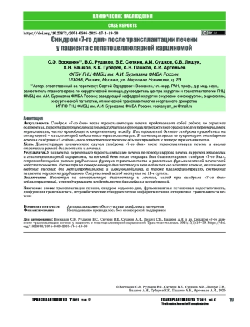 Цель. Демонстрация клинического случая синдрома «7-го дня» после трансплантации печени и анализ стратегии ранней диагностики и лечения.