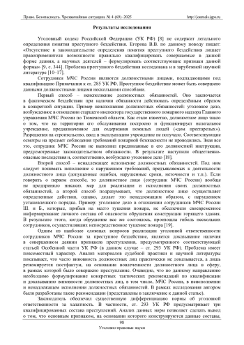 9. Егорова В.В. Уголовная ответственность за преступное бездействие // Научно-исследовательский центр “Technical Innovations”. 2021. № 8. С. 344-347. EDN: GAJUSS