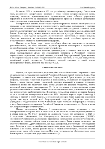 2. Алексенко М.А., Попов А.Н., Малахова О.Ю. Проект государственных преобразований М.М. Сперанского // Вестник Майкопского государственного технологического университета. 2024. № 1. С. 13-20. EDN: LTJLRX