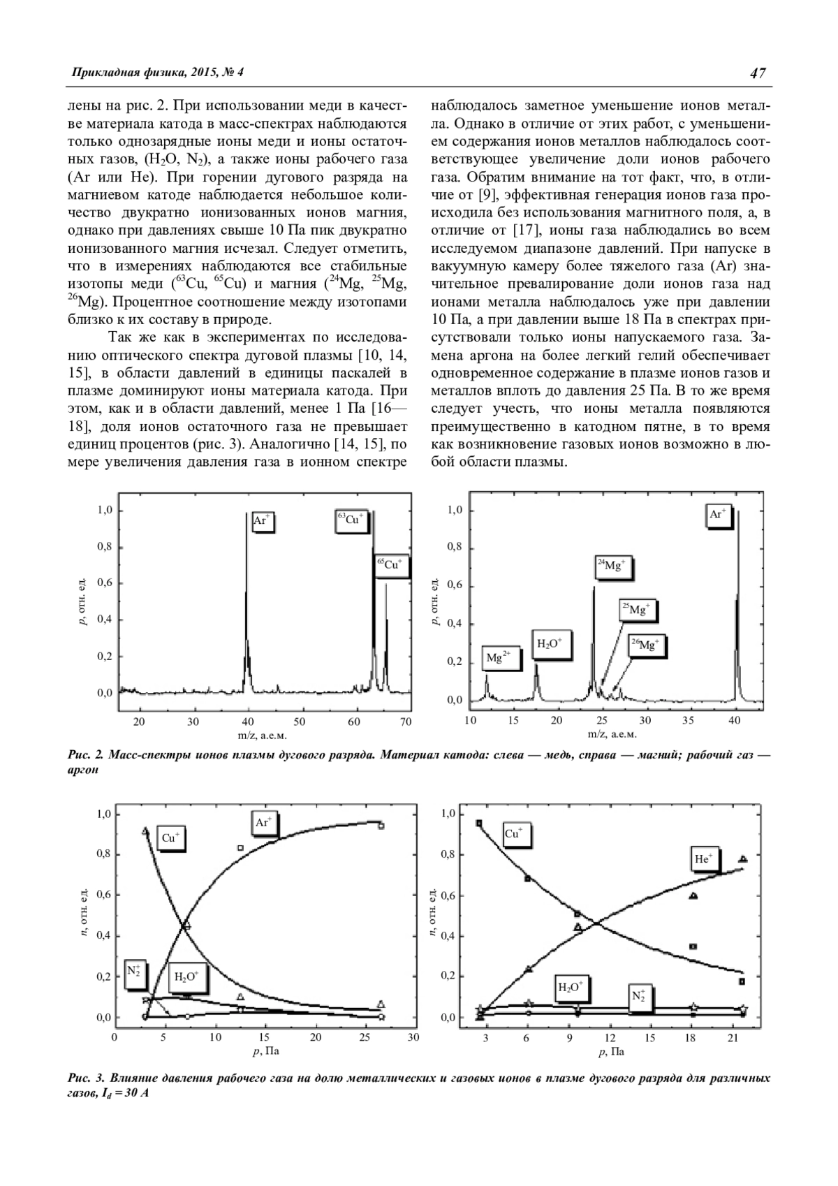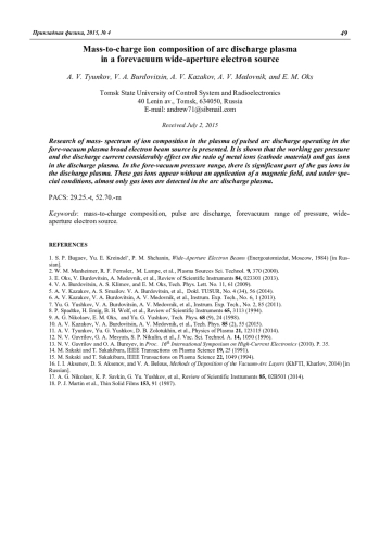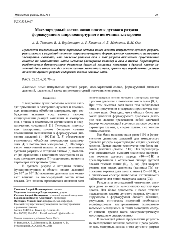 Тюньков А. В., Бурдовицин В. А., Казаков А. В., Медовник А. В., Окс Е. М. Масс-зарядовый состав ионов плазмы дугового разряда форвакуумного широкоапертурного источника электронов 45