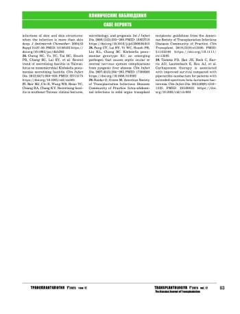 Несмотря на достижения в области трансплантологии, проблема гнойно-септических инфекций в ней остается весьма насущной. Этому во многом способствует иммунокомпрометированный статус больных, а также постоянный рост числа резистентных штаммов возбудителей гнойно-септических инфекций.