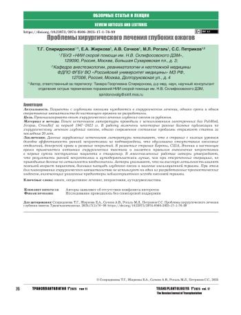 Материал и методы. Поиск источников литературы проводили с использованием электронных баз PubMed, Scopus, CrossRef за период 1947–2023 гг. В работу включены некоторые ранние базовые публикации по хирургическому лечению глубоких ожогов, однако современное состояние проблемы отражают статьи за последние 20 лет.