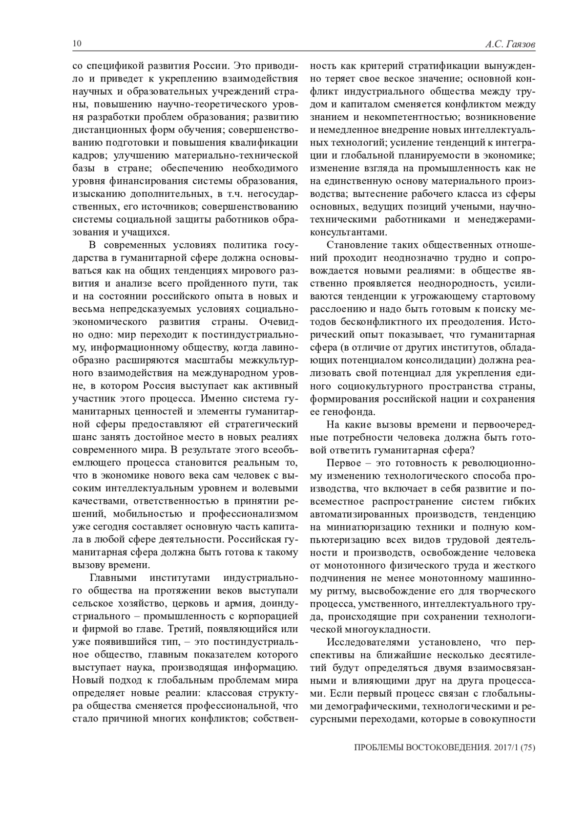 Гуманитарная сфера общества, являясь стратегическим ресурсом обеспечения национальных интересов страны, создает и наращивает ее духовный, интеллектуальный и экономический потенциал, в целом выступает как культурный фундамент общества, как своеобразный генетический механизм трансляции накопленного социального опыта, благодаря которому становится возможной полномасштабная реализация сущностных сил человека, изначально заложенных в нем самой природой.