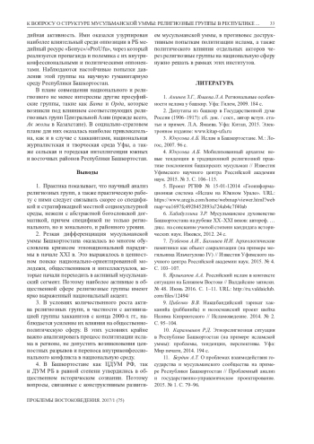 1. Аминев З.Г., Ямаева Л.А. Региональные особенности ислама у башкир. Уфа: Гилем, 2009. 184 с. EDN: QUSBZT