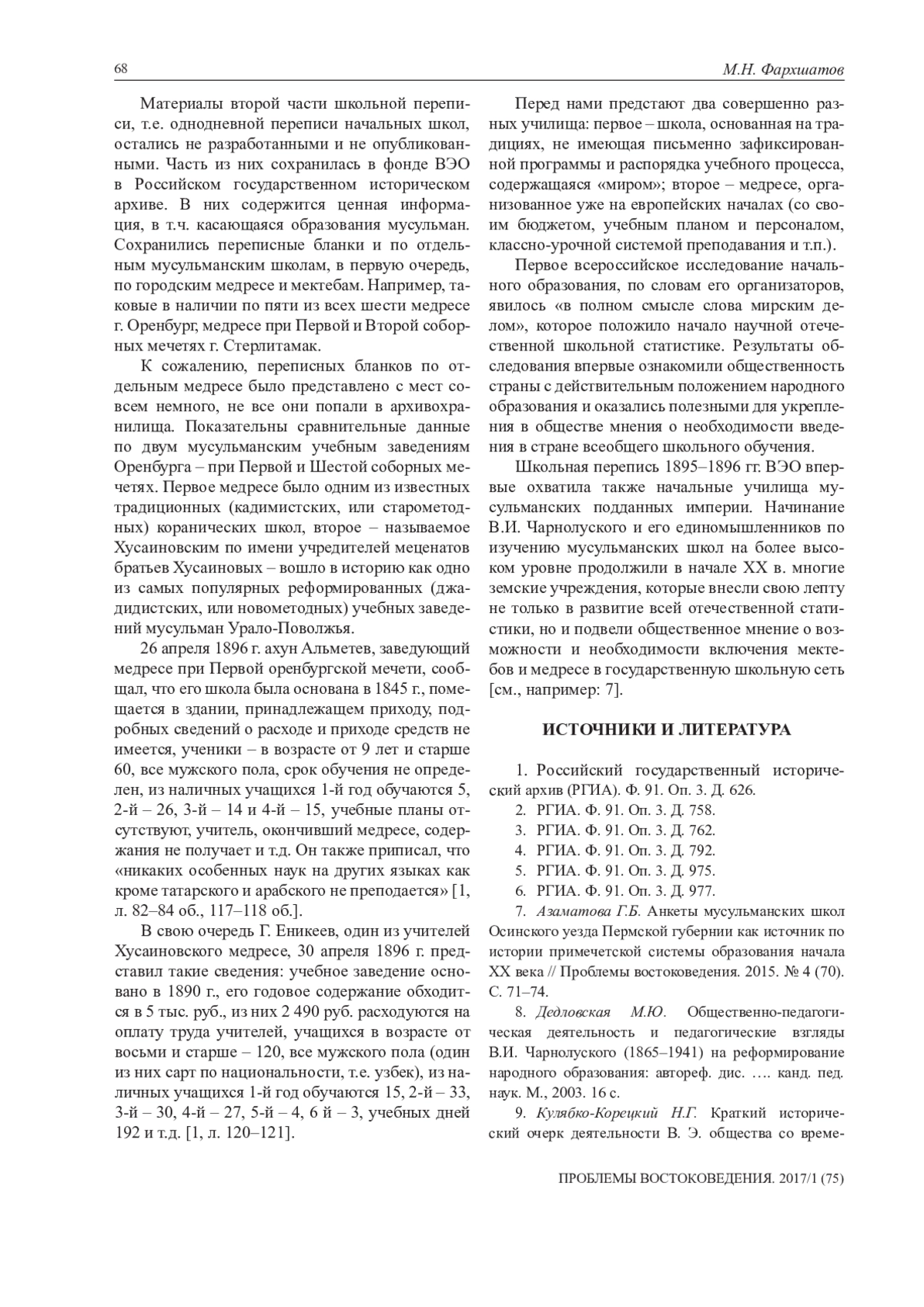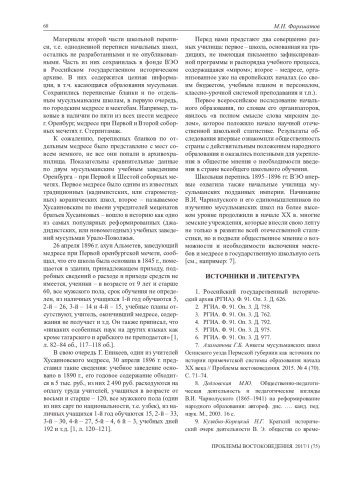 7. Азаматова Г.Б. Анкеты мусульманских школ Осинского уезда Пермской губернии как источник по истории примечетской системы образования начала ХХ века // Проблемы востоковедения. 2015. № 4 (70). С. 71-74. EDN: VJNDFN