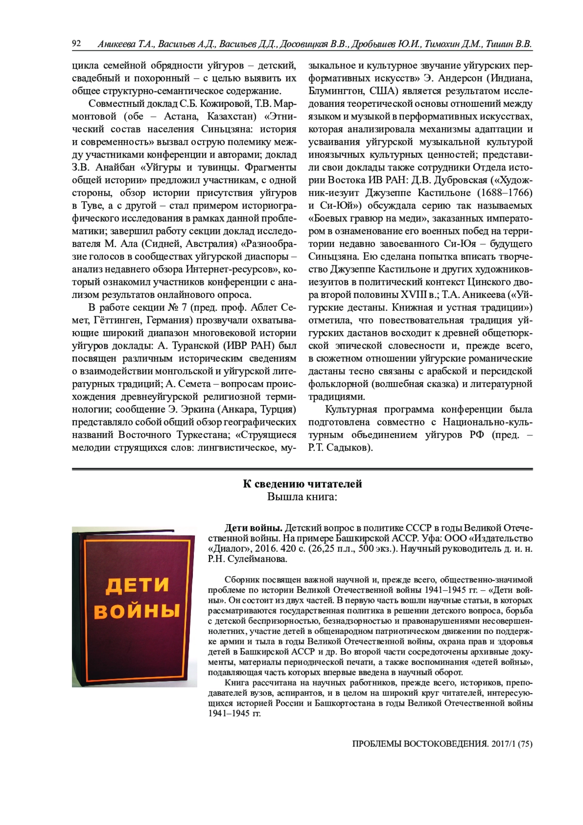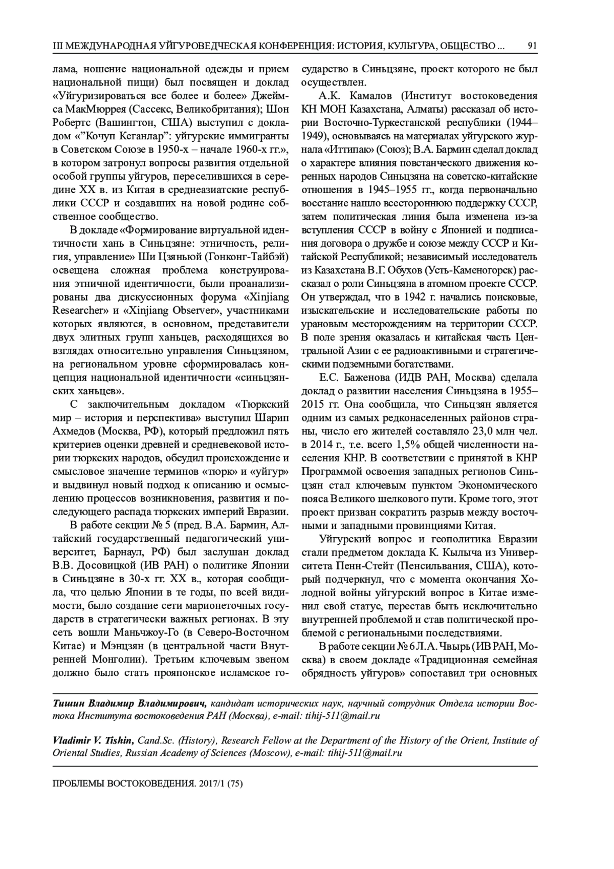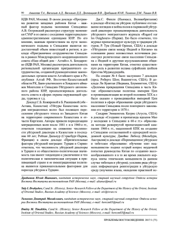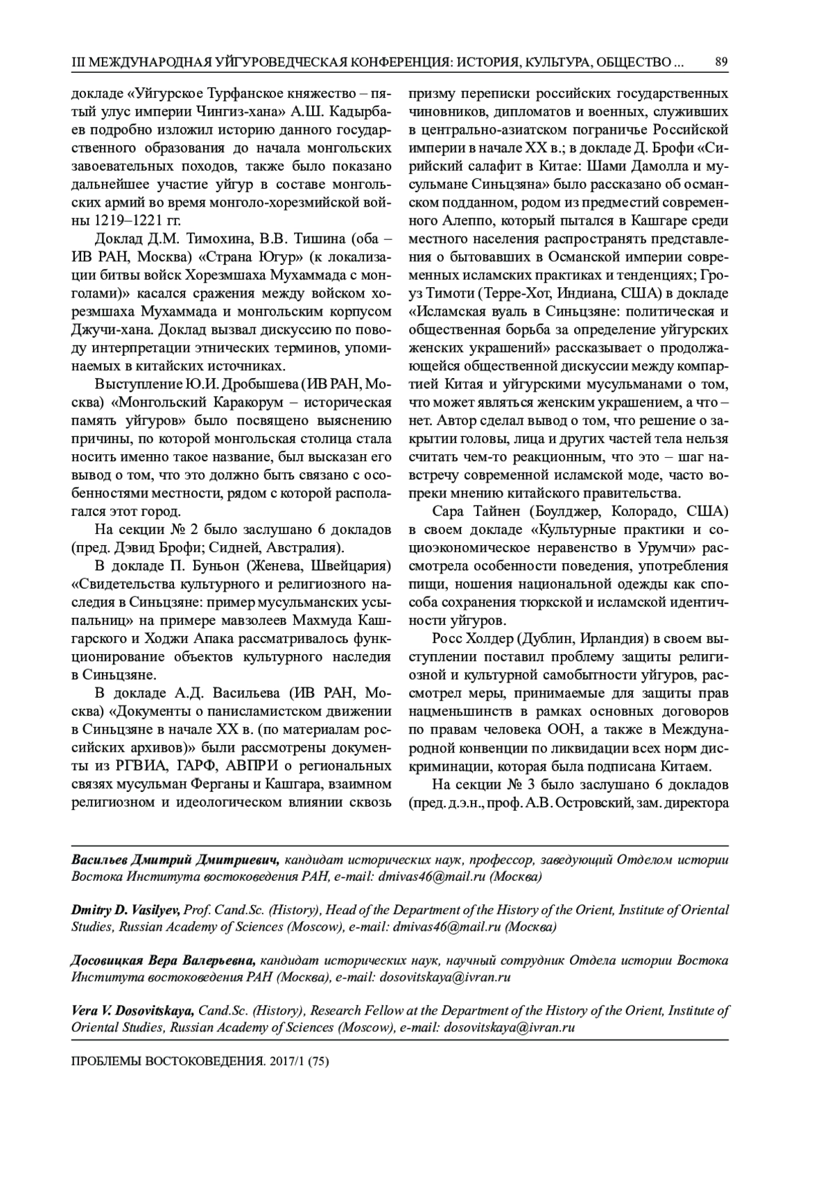 III Международная конференция1 была организована по гранту РГНФ No16-01-14003 «Организация и проведение международной конференции «История и культура уйгуров» (рук. проекта Д. Д. Васильев) при участии Института европейских, российских и евразийских исследований, Школы международных отношений им. Ллойда Эллиотта – подразделения Универ ситета Джорджа Вашингтона