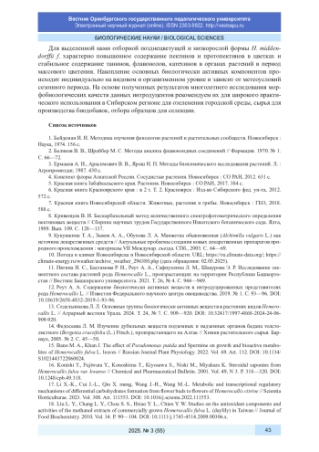 13. Седельникова Л. Л. Основные группы биологически активных веществ в растениях видов Hemerocallis L. // Аграрный вестник Урала. 2024. Т. 24, № 7. С. 909-920. DOI: 10.32417/1997-4868-2024-24-06-909-920 EDN: GHDWSH