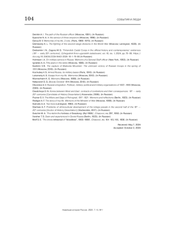 Мемуарное наследие русской военной эмиграции представлено множеством сочинений, которые образуют самостоятельный корпус исторических источников личного происхождения, отразивших переломный момент отечественной истории первой половины XX в. Большинство из них были посвящены участию авторов в недавних событиях революции и Гражданской войны и, таким образом, имели выраженное политизированное звучание. Порой современники пытались шире взглянуть на минувший период, закономерно объединяя годы Первой мировой войны и революционной смуты, поэтому их произведения приближались к жанру военных мемуаров