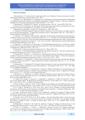 16. Boerner R. E. J., Brinkman J. A., Smith A. Seasonal variations in enzyme activity and organic carbon in soil of a burned and unburned hardwood forest // Soil Biology and Biochemistry. 2005. Vol. 37. P. 1419-1426. DOI: 10.1016/j.soilbio.2004.12.012