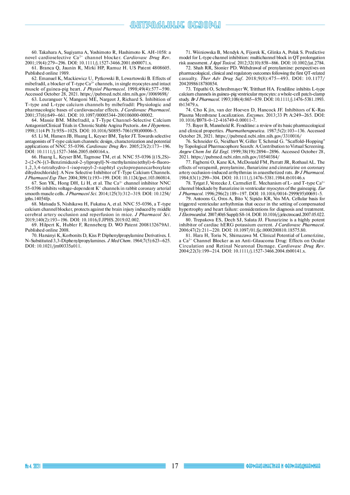 36. Hoick M, Osterrieder W Tiapamil. Cardiovasc Drug Rev. 1987;5(1):77- 94. DOI: 10.1111/j.1527-3466.1987.tb00503.x