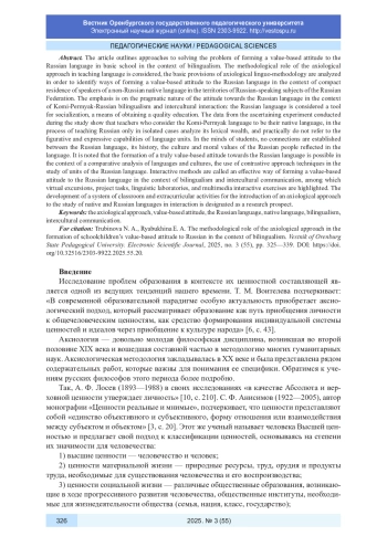 В статье намечены подходы к решению проблемы формирования ценностного отношения к русскому языку в основной школе в условиях билингвизма. Рассмотрена методологическая роль аксиологического подхода в преподавании языка, проанализированы базовые положения аксиологической лингвометодики с целью выявления путей формирования ценностного отношения к русскому языку в условиях компактного проживания носителей нерусского родного языка на территориях русскоязычных субъектов Российской Федерации. Акцентировано внимание на прагматическом характере отношения к русскому языку в условиях коми-пермяцко-русского билингвизма и межкультурного взаимодействия: русский язык рассматривается как инструмент социализации, средство получения качественного образования. В ходе констатирующего эксперимента установлено, что учителя, считающие коми-пермяцкий язык родным, в процессе преподавания русского языка только в единичных случаях анализируют его лексическое богатство, практически не обращаются к изобразительно-выразительным возможностям языковых единиц. В сознании обучающихся не устанавливаются связи между русским языком, его историей, культурой и нравственными ценностями русского народа, отражающимися в языке. Отмечено, что формирование истинно ценностного отношения к русскому языку возможно в контексте сопоставительного анализа языков и культур, применения приемов контрастивного подхода при изучении единиц русского языка. Эффективным способом формирования ценностного отношения к русскому языку в условиях билингвизма и межкультурной коммуникации названы интерактивные методики, среди которых выделены виртуальные экскурсии, проектные задания, лингвистические лаборатории, мультимедийные интерактивные упражнения. В качестве перспективы исследования обозначена разработка системы урочной и внеурочной деятельности по внедрению аксиологического подхода к изучению родного и русского языков во взаимодействии.