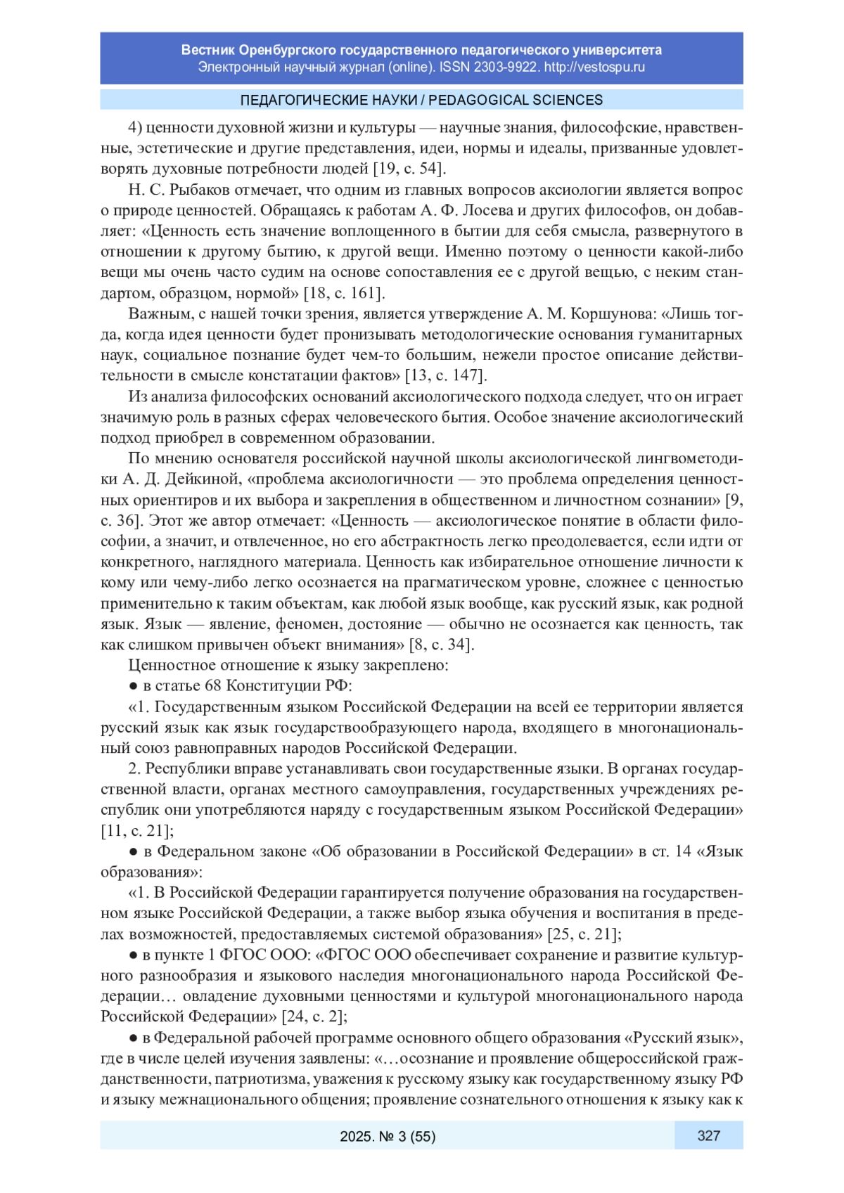 6. Воителева Т. М., Марченко О. Н. Основы формирования ценностного отношения к родному языку как феномену национальной культуры // Педагогика и психология образования. 2021. № 2. С. 41-52. DOI: 10.31862/2500-297X-2021-2-41-52 EDN: HOVOLU