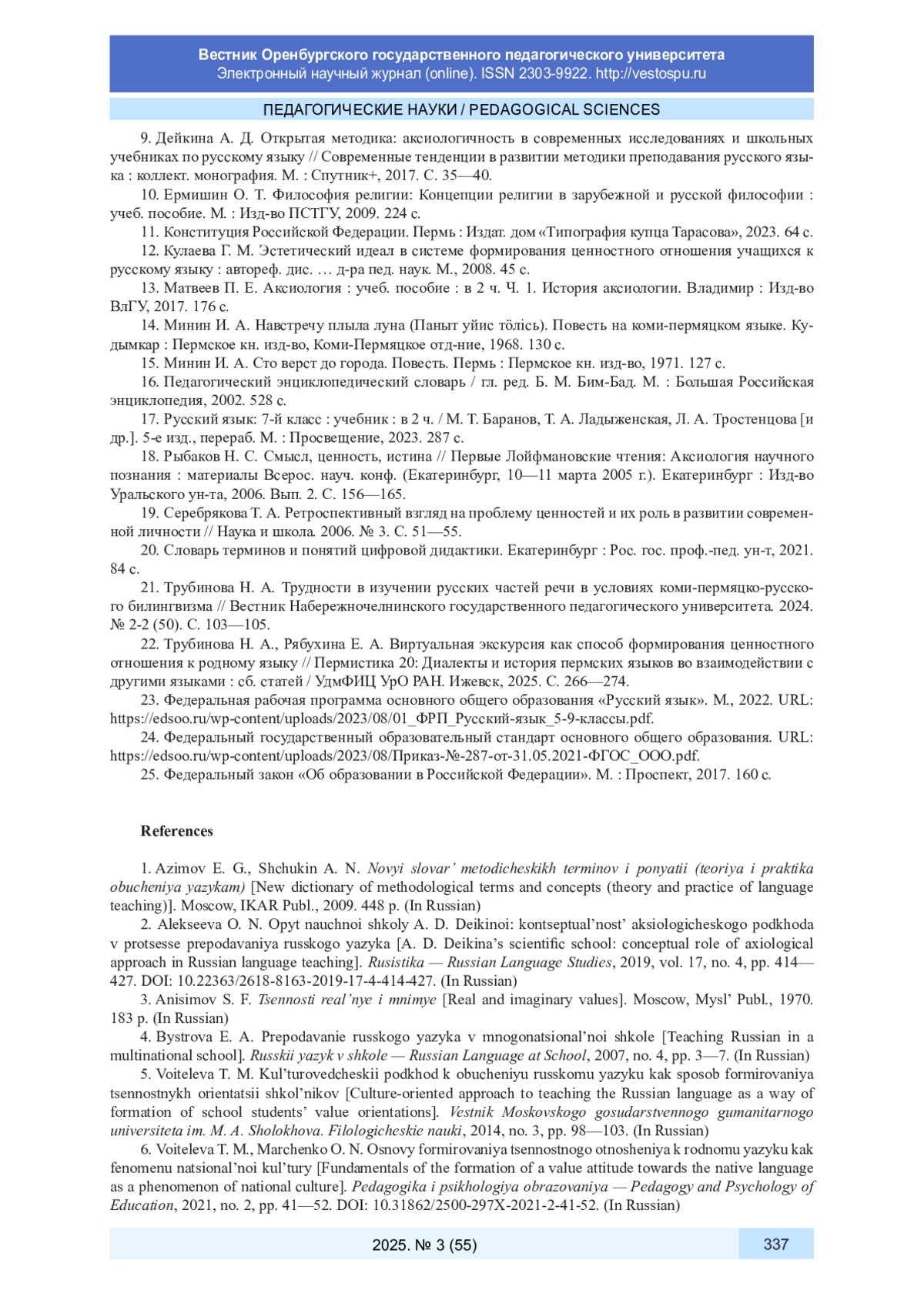 7. Дейкина А. Д. Аксиологическая методика преподавания русского языка. М.: МПГУ, 2019. 210 с. EDN: SIKJUV
