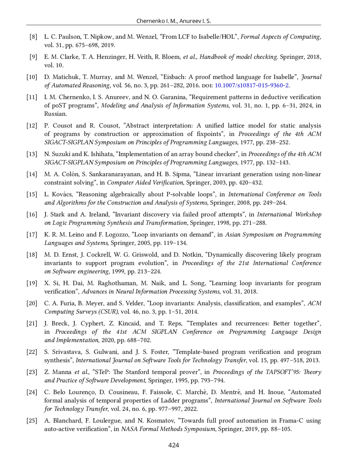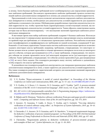 7. I. M. Chernenko, “Requirements patterns in deductive verification of process-oriented programs and examples of their use,” System Informatics, no. 22, pp. 11-20, 2023.