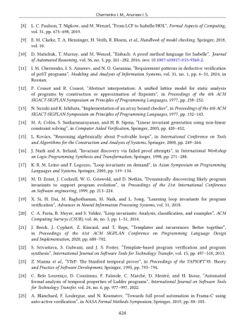 5. I. Anureev, N. Garanina, T. Liakh, A. Rozov, V. Zyubin, and S. Gorlatch, “Two-Step Deductive Verification of Control Software Using Reflex,” in Perspectives of System Informatics, 2019, pp. 50-63, https://doi.org/10.1007/978-3-030-37487-7_5.