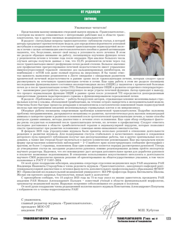 Представляем вашему вниманию очередной выпуск журнала «Трансплантология», в котором вы можете ознакомиться с интересными работами как в области трансплантологии, так и других смежных медицинских специальностей.