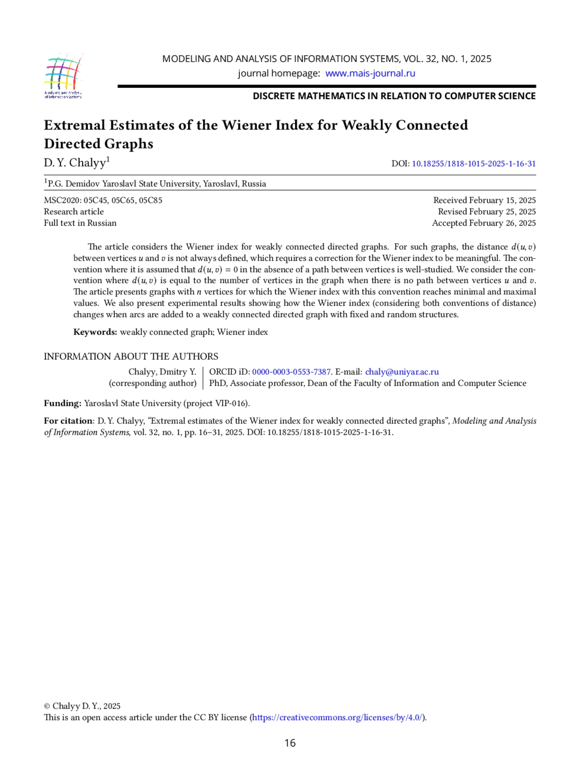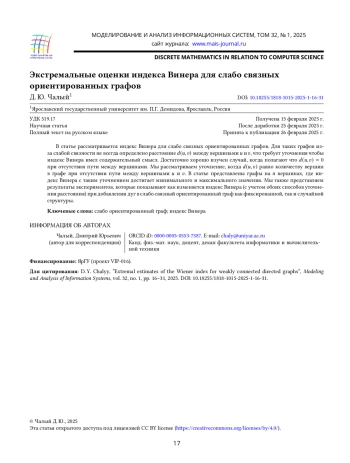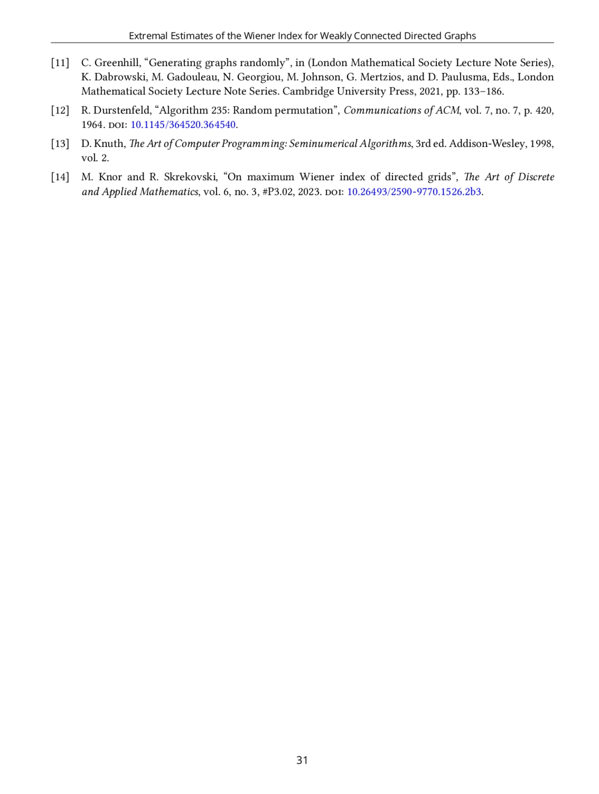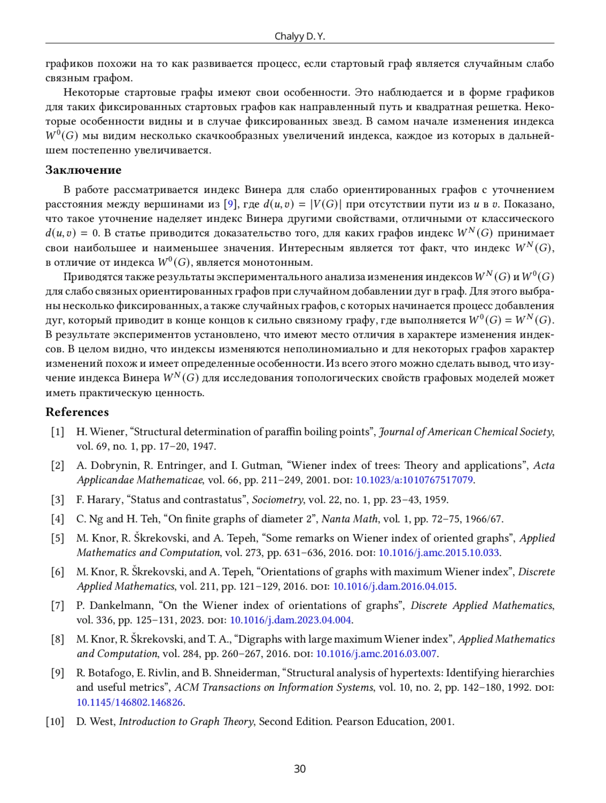 7. P. Dankelmann, “On the Wiener index of orientations of graphs,” Discrete Applied Mathematics, vol. 336, pp. 125-131, 2023, https://doi.org/10.1016/j.dam.2023.04.004.