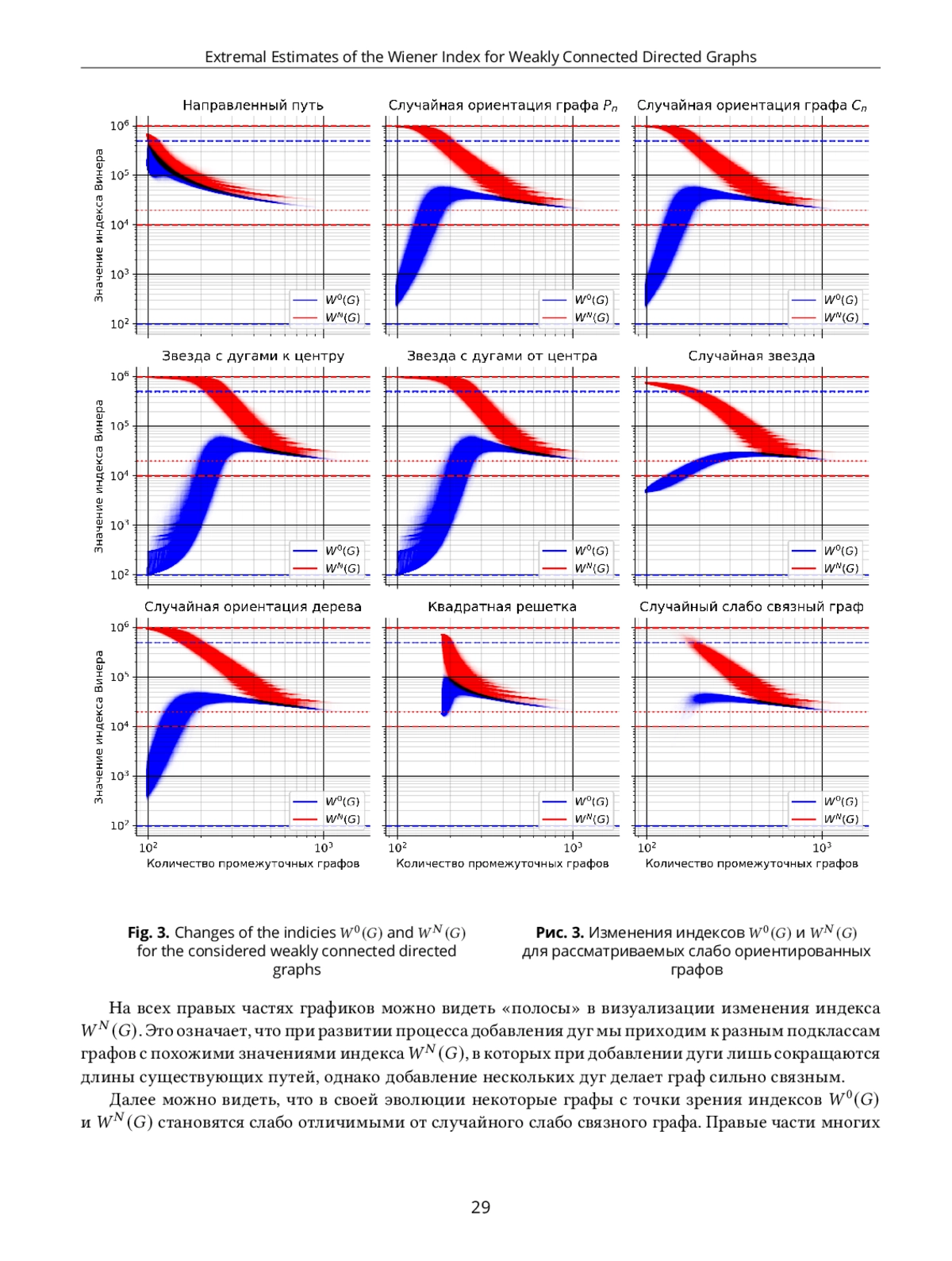 В статье рассматривается индекс Винера для слабо связных ориентированных графов. Для таких графов из-за слабой связности не всегда определено расстояние между вершинами и, что требует уточнения чтобы индекс Винера имел содержательный смысл. Достаточно хорошо изучен случай, когда полагают что при отсутствии пути между вершинами. Мы рассматриваем уточнение, когда равно количеству вершин в графе при отсутствии пути между вершинами и. В статье представлены графы на вершинах, где индекс Винера с таким уточнением достигает минимального и максимального значения. Мы также представляем результаты экспериментов, которые показывают как изменяется индекс Винера (с учетом обоих способов уточнения расстояния) при добавлении дуг в слабо связный ориентированный граф как фиксированной, так и случайной структуры.