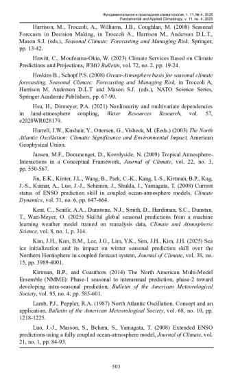 1. Багров, Н.А., Кондратович, К.В., Педь, Д.А., Угрюмов, А.И. (1985) Долгосрочные метеорологические прогнозы, Л., Гидрометеоиздат, 248 с.