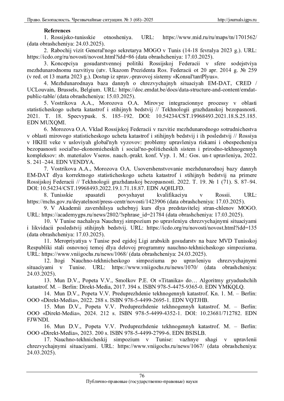 17. Научно-технический симпозиум в Тунисе: важные шаги в управлении чрезвычайными ситуациями. URL: https://www.vniigochs.ru/news/1067/ (дата обращения: 24.03.2025).