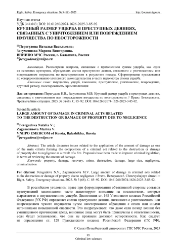 2. Бабушкин М.Ю., Немченко С.Б., Шеншин В.М. Об усилении уголовной ответственности за уничтожение или повреждение имущества по неосторожности // Российский следователь. 2021. № 8. С. 43-47. EDN: OXHCBA