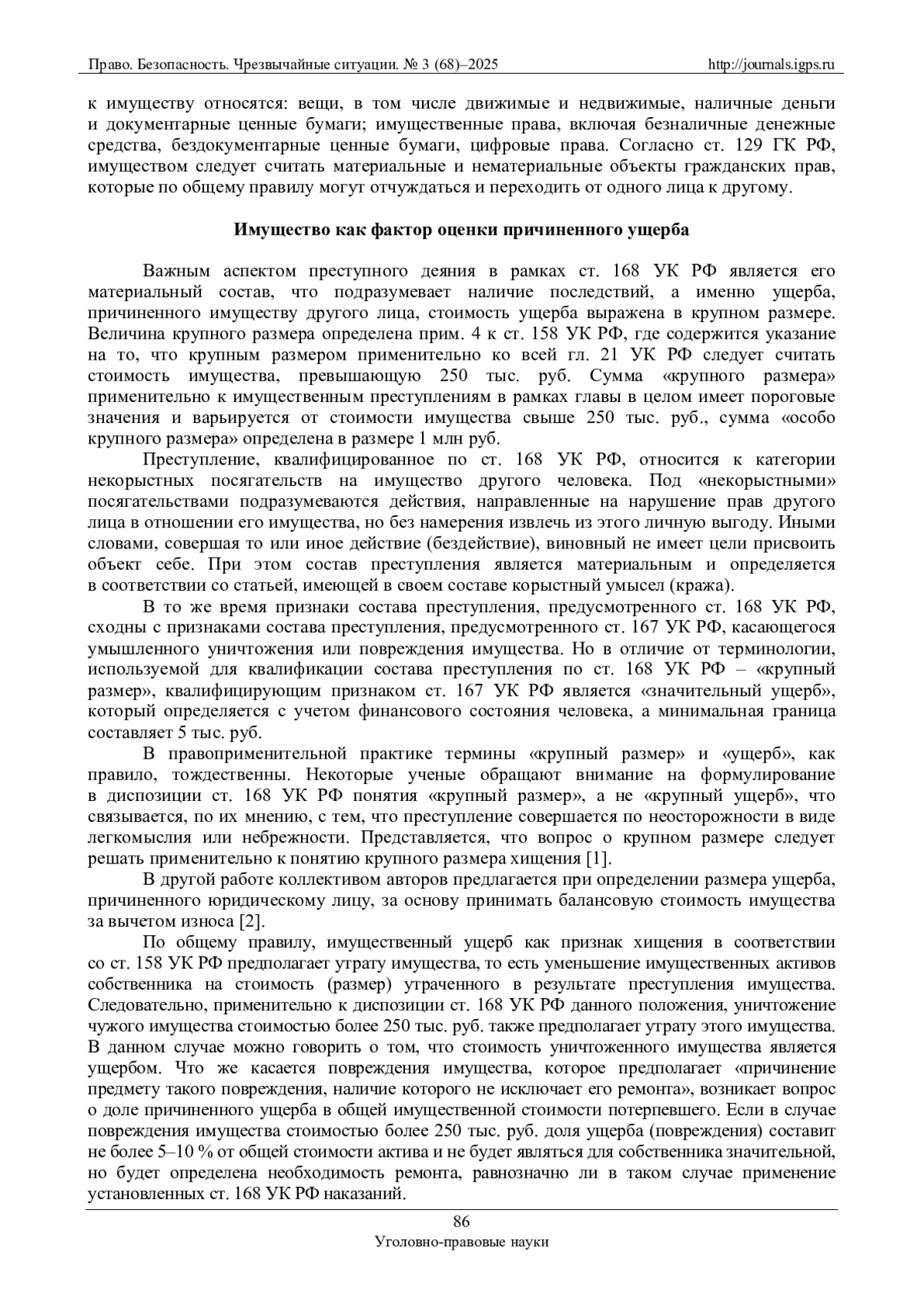 6. Рыжов Э.В. Квалифицирующий признак “значительный ущерб” в преступлениях против собственности как инструмент скрытой криминализации // Российский следователь. 2024. № 5. С. 39-42. EDN: XNQPHH